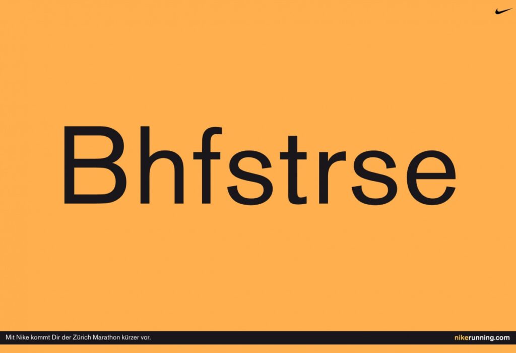 Nike ist offizieller Ausrüster des Zürich Marathons. Die Kultmarke bietet ambitionierten Läuferinnen und Läufern besonders leichte Laufschuhe. Wer mit Nike läuft, dem kommen die 42,195 Kilometer des Zürich Marathons deshalb weniger lang vor. Dies demonstrierten wir, indem wir die bekanntesten Streckenabschnitte plakativ abkürzten. Auf Inseraten, Plakaten entlang der Strecke und Online-Bannern.