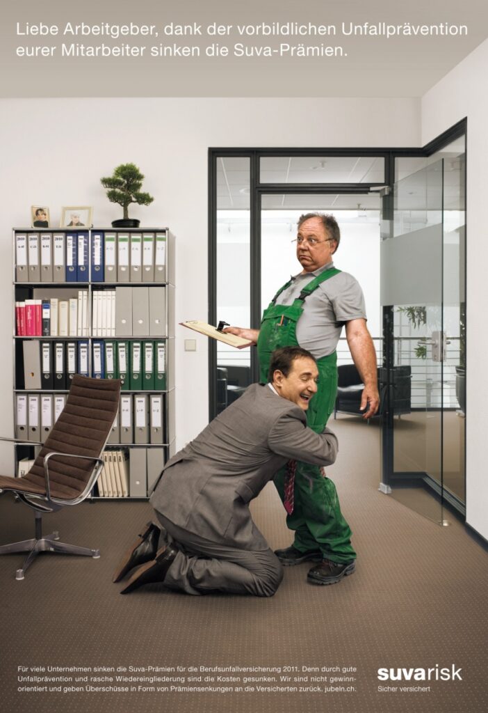 Die Suva ist nicht gewinnorientiert und gibt Überschüsse in Form von Prämiensenkungen an ihre Versicherten zurück. Was für die versicherten Betriebe natürlich ein Grund zur Freude ist. Und für Ruf Lanz ein Grund zur auffälligen Bewerbung der frohen Botschaft.