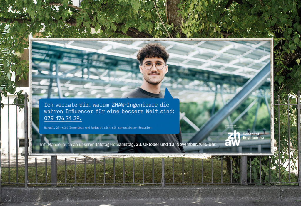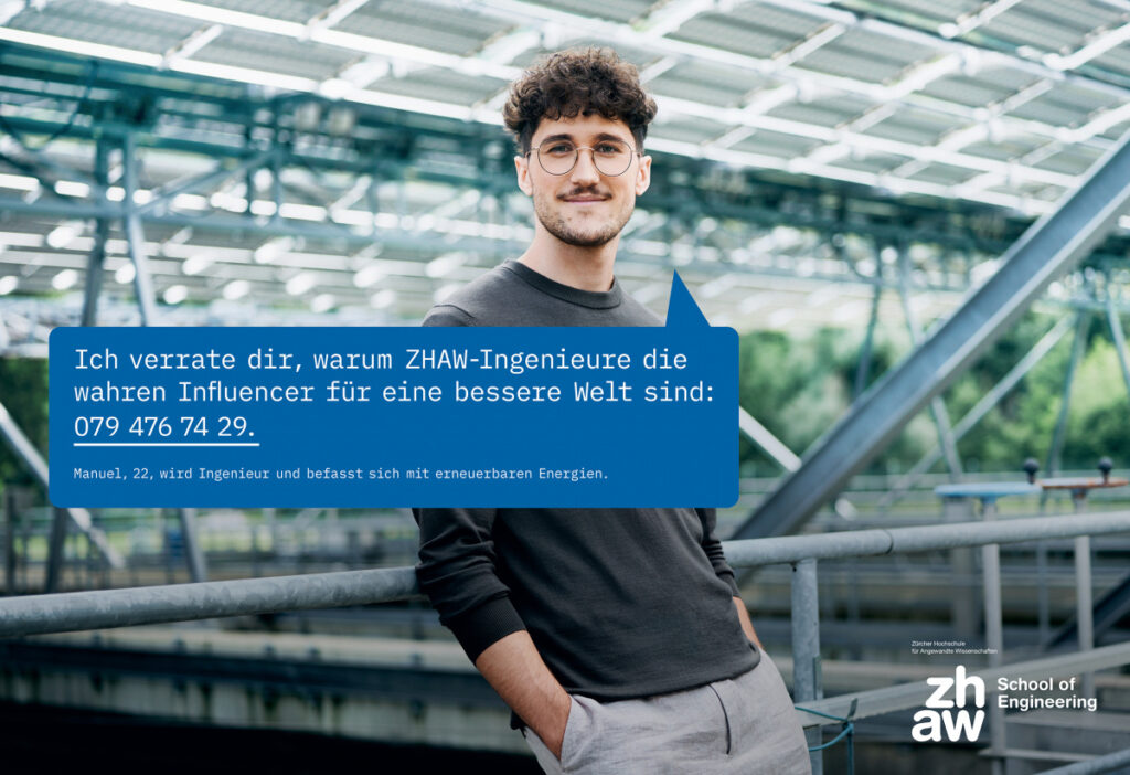 Die knifflige Studien-Aufgabe für Ruf Lanz: Junge Talente auf das Ingenieur-Studium aufmerksam machen. Die Lösung: Die heutigen Studierenden werben gleich selber um Nachwuchs. Inklusive Handynummer. So erfahren Interessierte aus erster Hand, warum sich das Studium an der ZHAW lohnt. Authentisch und ohne Filter.