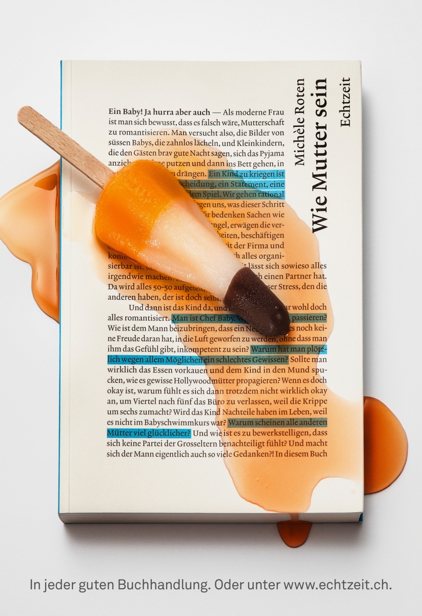 Einzelbuch-Bewerbung von «Wie Mutter sein» von Michèle Roten. Mit tatkräftiger Unterstützung von Laura (2), Luca (3), Anna (3) und Noah (4).