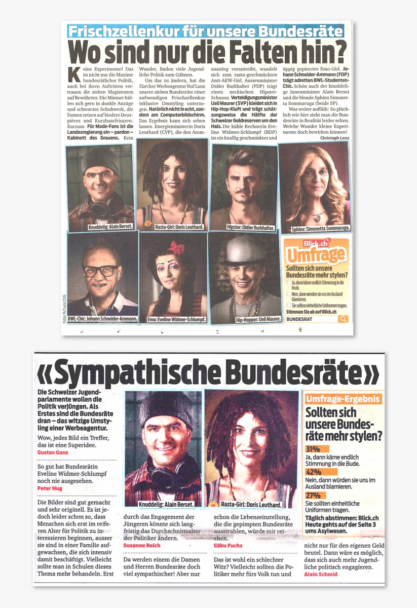 • Innen folgten Hiphop-Ueli, Hipster-Didi und die anderen Bundesrats-Jungspunde. Tenor der Redaktion: Politik voll geil!