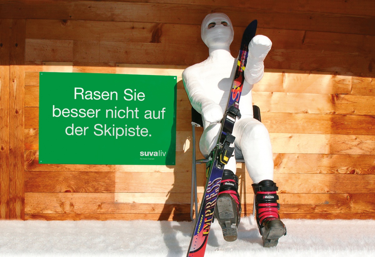 Jedes Jahr werden zahlreiche Wintersportunfälle registriert. Die Schneesport-Kampagnen tragen mit verblüffenden Dramatisierungen dazu bei, dass mehr Abfahrten im Tal enden. Und weniger im Spital.