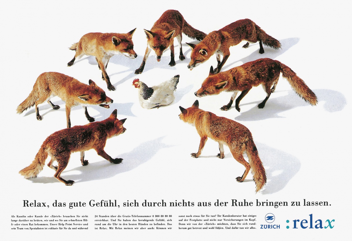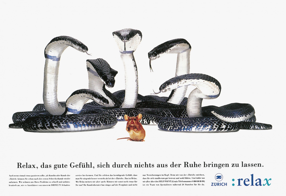 Launch campaign for Zurich Insurance called Relax. Agency: Wirz. Year: 1995. Concept: Danielle Lanz.